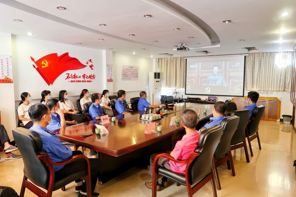 7月1日上午,庆祝中国共产党成立100周年大会在北京天安门广场隆重举行,中共中央总书记、国家主席、中央军委主席习近平发表重要讲话。中央广播电视总台对大会进行了全程直播。市城市管理综合执法局组织局系统全体党员干部职工,在八楼会议室内集中收听收看了庆祝大会实况。