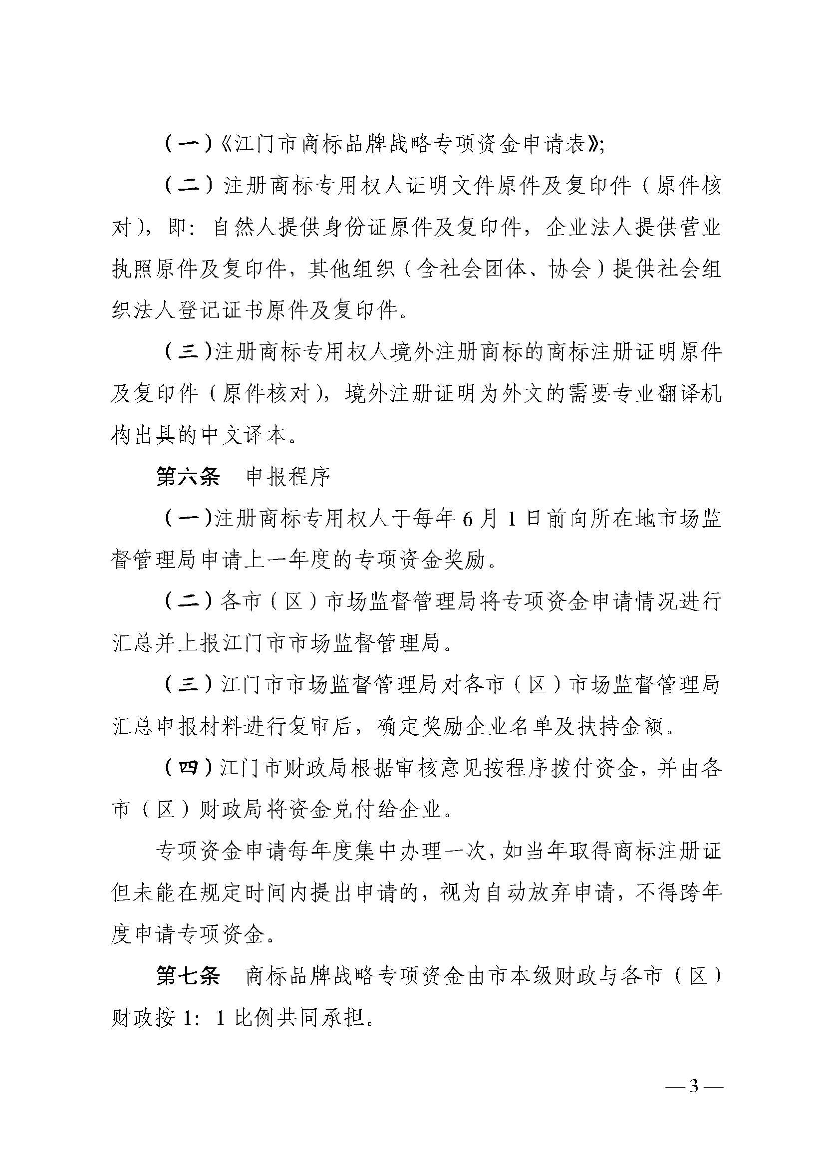 关于印发《江门市市场监督管理局 江门市财政局关于商标品牌战略专项资金使用管理办法》的通知