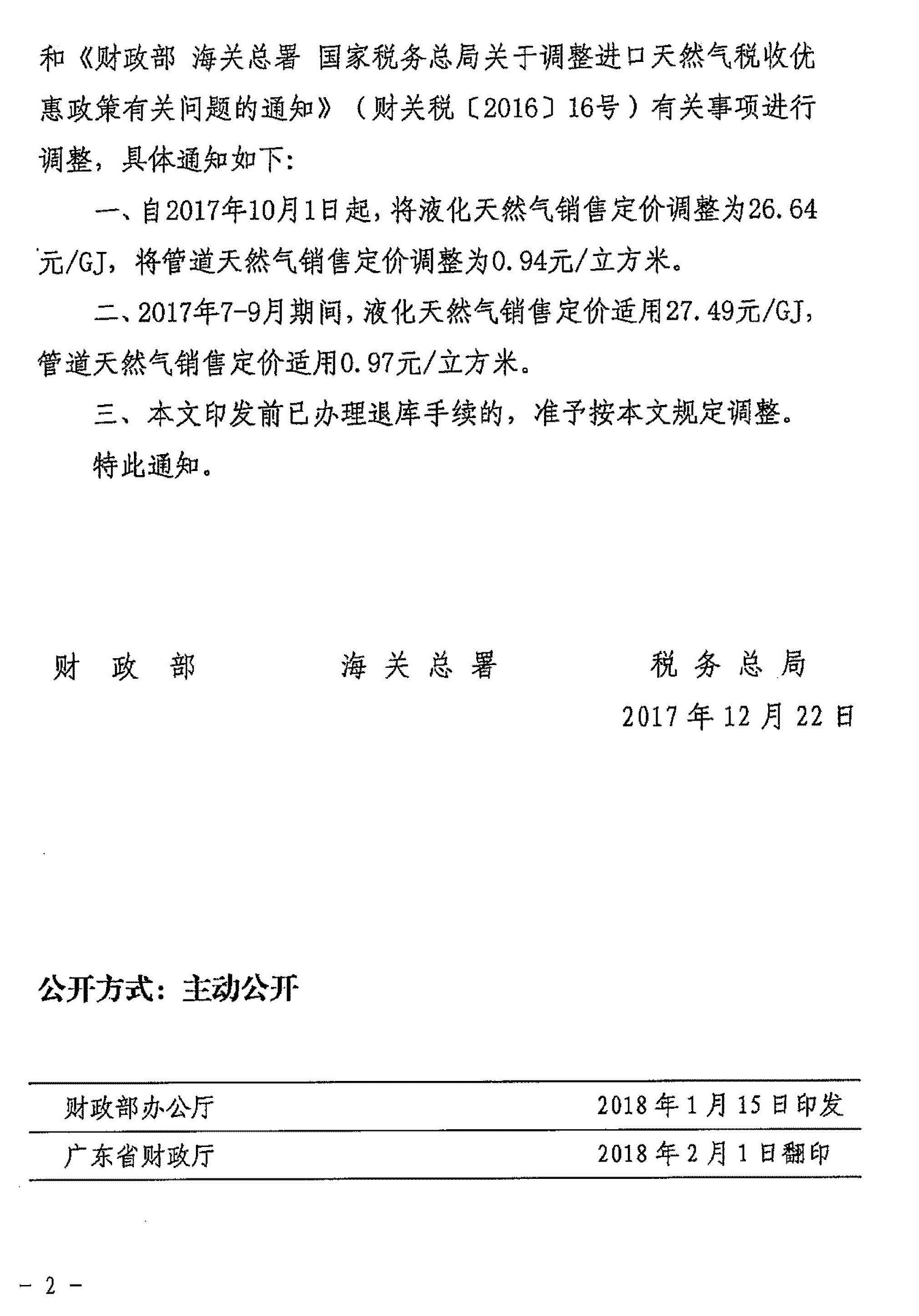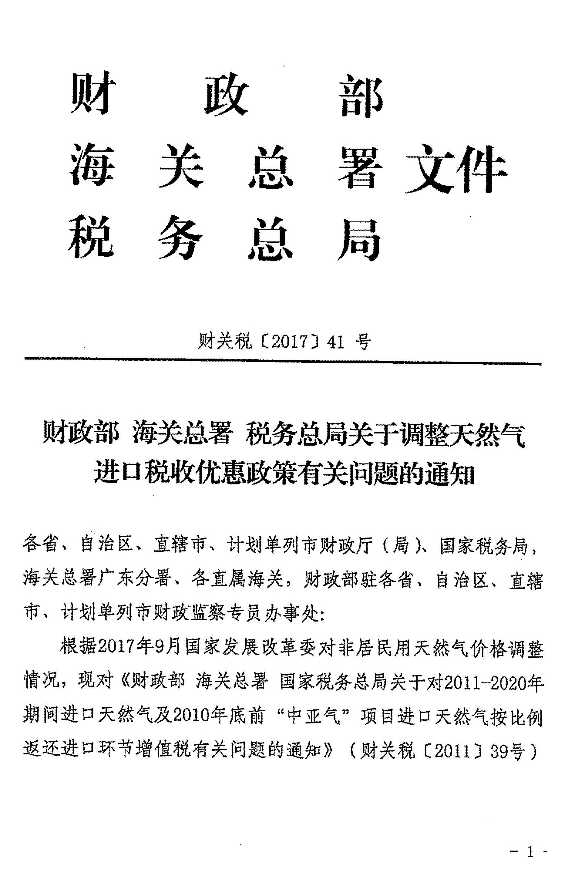财政部 海关总署 税务总局关于调整天然气进口税收优惠政策有关问题的通知