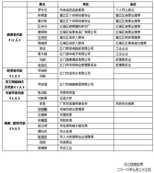 江门市物价局拟召开江门市区自来水价格调整听证会。为适应社会主义市场经济价格管理的要求,规范政府价格决策的行为,提高政府价格决策的民主性、科学性和透明度,依据国家发展和改革委员会《政府制定价格听证办法》的相关规定,现将相关事宜公告如下: