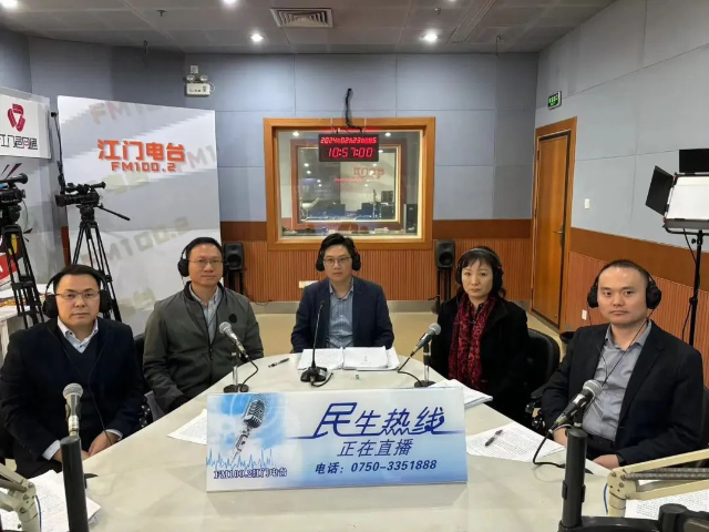 2024年2月23日上午,市发展改革局党组书记、局长、市大湾区办主任胡其波带队作客江门广播电台《民生热线》节目,通过节目与广大市民进行交流。副局长陈振中、总经济师黎远征以及区域经济科、产业发展科负责同志参与上线直播。