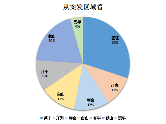 6月20日至6月26日案发区域及发案数:蓬江34起,江海12起,新会14起,台山14起,开平12起,鹤山22起,恩平5起。