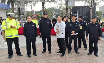 活动当天,市局党委委员、副局长陈珉带领指挥中心、治安、交警、巡警等部门领导到蓬江区活动现场指挥部检查指导安保工作,要求各地要从严从细落实各项安保措施,坚决确保活动安全。市局治安支队由支队、大队领导带队,分成7个组前往四市三区对活动安保工作进行检查督导。在全市公安民警的全力保障下,四市三区健走马拉松嘉年华活动秩序良好并圆满结束。