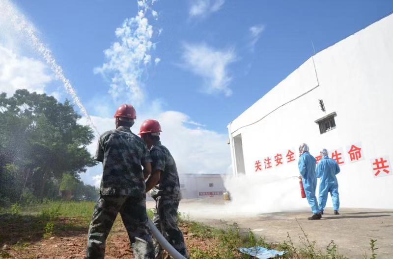此次应急救援演练模拟台山市弘业烟花爆竹经营公司1号仓库突发火情,冒出浓烟并发生爆炸,库区管理人员逃出不及被浓烟呛伤,晕倒在地,并有生命危险。灾情发生后,公司立即启动应急预案,向110、119、120报警,同时向台山市应急管理局报告情况,并迅速组织公司人员开展自救。由于火势过大,无法得到控制,公司人员立即转移到疏散点。台山市应急管理局组织的救援力量迅速赶赴到现场开展联合救援,救援队首先抢救出受伤的受困人员,并立即进行现场救治,随后通过救护车送往医院;消防救援队出动高喷车、水罐泡沫车、抢险救援车以及消防机器人将明火扑灭,消防救援专家进入仓库实地勘察火灾现场,确保险情隐患排除,演练至此结束。