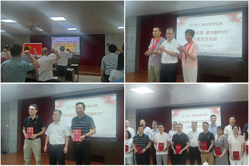 7月14,举办了“奋进新征程建功新时代”主题党日活动。活动中,组织党员集体过“政治生日,全体党员面对党旗重温了入党誓词,铭记入党初心,牢记为民使命。局党组书记、局长李健中向容敏坚、张佩江两位老党员颁发“光荣在党50年”纪念章;表彰了2022年度2名优秀党支部书记和18名优秀等次党员,以老党员、优秀党员对党无比忠诚和爱岗敬业精神教育党员。李健中同志还围绕深入学习贯彻习近平总书记视察广东重要讲话重要指示精神,为党员讲授了“牢记嘱托在新征程上作出新贡献、展现新担当”主题党课,引导党员切实把对总书记的感恩感激之情转化为做好工作的强大动力,以更饱满的精神状态、更务实有力的举措推动我市制造业高质量发展。
