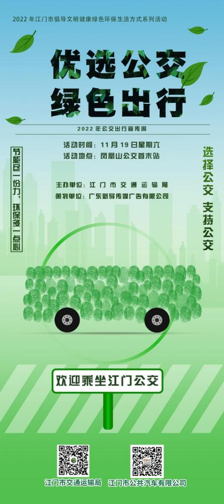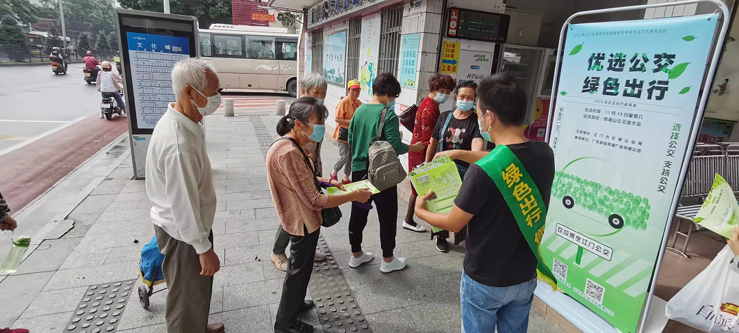 11月19日,根据我局2022年绿色出行系列宣传活动的部署,为响应2022年江门市倡导文明健康绿色环保生活方式系列活动,我局在凤凰山公交首末站开展以“优选公交”为主题的绿色出行宣传活动。