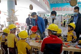 (图为复评抽查专家组在台山市大江镇中心幼儿园实地考察)