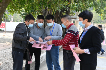(图为复评督导验收专家在台山市相关镇查阅资料)