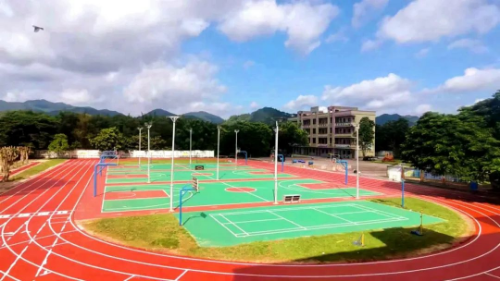 在江门市新会区沙堆镇沙西初级中学,运动场的升级改造也于2023年年底顺利完成。该校原来的运动场跑道是粗糙的砂石路面,经过长年累月的使用和雨水冲刷,跑道变得凹凸不平,碎石杂乱,学生在运动时容易受伤,且尘土飞扬给学生的健康和安全带来隐患。此外,篮球场也比较残旧,无法满足学生平时上体育课的需求。