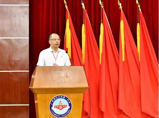 江门市教育局党组书记、局长张璐同志讲话时指出,中共江门一中第三次代表大会的召开是一中全体党员和师生员工政治生活中的大事,对学校强化党建、加快发展、办好人民满意的教育具有重要意义。他肯定江门一中过去取得的成绩有目共睹,提出了三点希望,表示市教育局将全力支持江门一中扩容增效提质发展,切实解决教职工的实际困难,发挥名校辐射作用,带动江门教育发展。