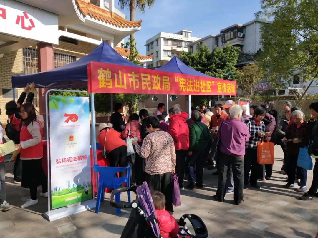为推动我市广大社区居民群众和社区组织深入学习宪法,弘扬宪法精神,维护宪法权威,增强法治意识,提高依法办事能力。根据2019年全国“宪法进社区主题日”宣传活动、广东省“宪法宣传周”等工作要求,江门市民政局组织各地积极开展多层次、多角度的“宪法进社区主题日”宣传活动。