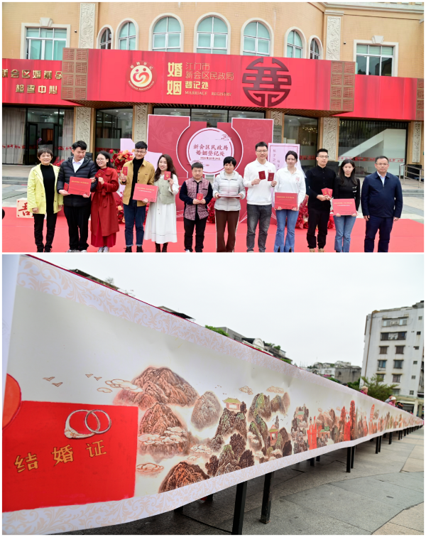 为大力推进婚俗改革,传承和发扬中华优秀传统文化,当天江门市各婚姻登记机关开展了形式多样、精彩纷呈的活动,让新人们感受浓浓的中国式浪漫,开启了幸福美满的婚姻新旅程。