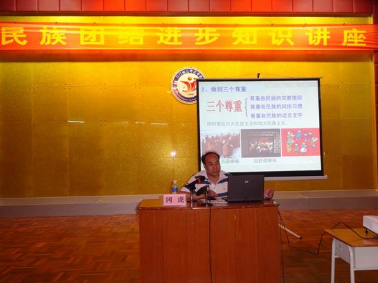 在讲座上,冈虎从民族及其基本特征、我国民族关系的主要特点等方面,详细为师生们讲解了我国民族的民族关系,并告诉师生们民族的基本特征就是有共同语言、生活在共同地域、有共同经济生活和共同的心理素质。而我国各民族的发展,呈现了民族成分多、大杂居小聚居、民族关系中和谐与不和谐并存的特点。