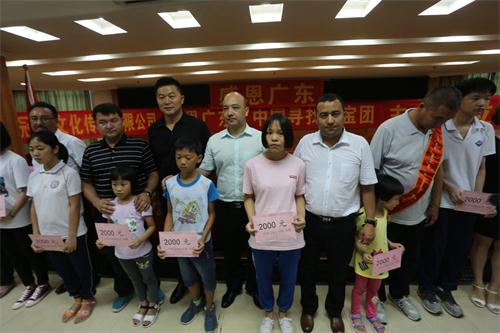 为了报答开平人的恩情,参加活动的中国寻找宝宝团、广东省新疆商会和新疆多位企业家们纷纷慷慨解囊,给开平市10位困难儿童每人捐赠了2000元的助学金,还给长沙敬老院和开平环卫工人分别捐赠了15000元和5000元扶贫助困资金及慰问金。通过这次活动,弘扬了中华民族优良扶困助弱的美德,延续了汉维两族人民的爱心,谱写了一曲各民族亲如一家、团结互助的赞歌。