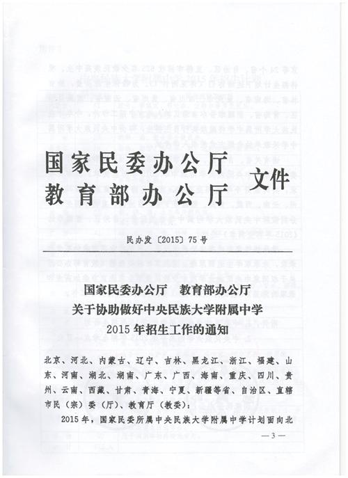 教育部办公厅关于协助做好中央民族大学附属中学2015年招生工作的通知》的通知