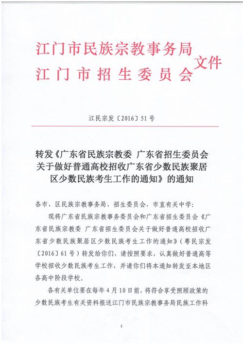 江门市民族宗教事务局 江门市招生委员会