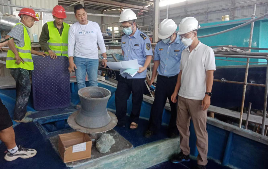 10月12日,市海洋综合支队派员到台山市横山渔船修造厂进行渔船检验。