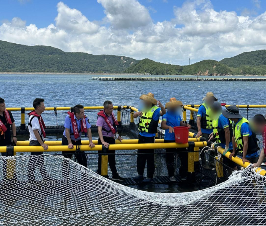 8月3日,市农业农村局、市海洋综合执法支队联合市气象局、市海洋集团、江门电信公司到台山调研现代化海洋牧场和海洋执法工作,并实地考察了上川深海养殖网箱项目建设。