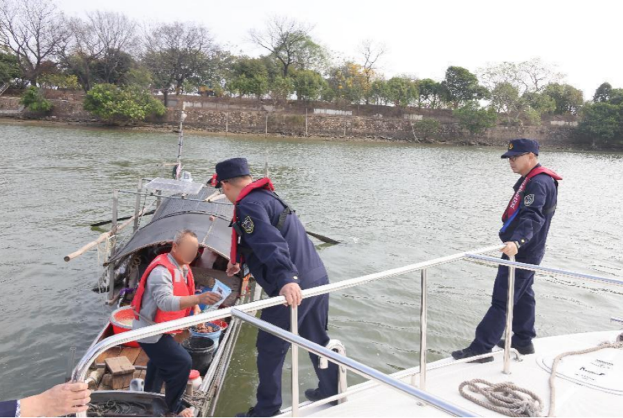 2月4日,市海洋综合执法支队联合市交通运输局、江门海事局、江门航道事务中心、蓬江区住房和城乡建设局、蓬江区农业农村和水利局、蓬江区各沿江镇街开展西江水域节前水上交通安全专项执法行动,行动共出动执法及工作人员17人、执法船艇2艘,对船舶进行临水作业必须穿救生衣、禁止在航道内作业等法律法规的宣传教育,共检查船舶7艘、派发宣传资料20份。