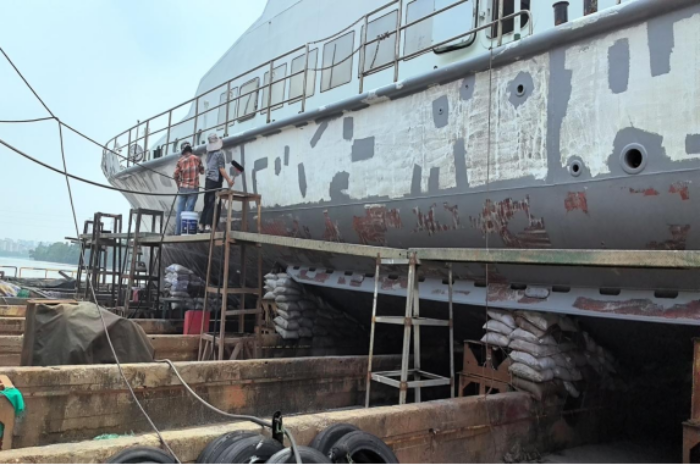 5月3日,市海洋综合执法支队派员前往佛山市南海珠峰造船有限公司驻厂,跟进执法船“中国渔政44201”上排维护工作。
