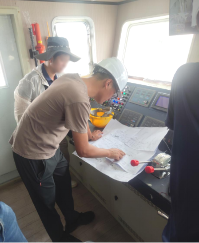 7月19日,市海洋综合执法支队派员到台山市大江镇渔船建造企业开展渔船检验工作。