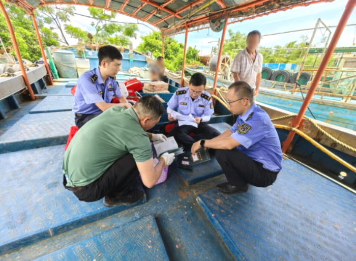 7月23日,市海洋综合执法支队副支队长钟树年带队到台山市都斛镇开展钓具渔船安全检查工作。