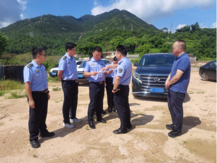 8月23日,市海洋综合执法支队联合省总队直属二支队对台山北陡镇某石堆场项目用海情况进行检查,并向企业负责人解读有关用海政策。