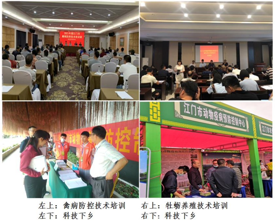 一是努力提升养殖农户防控技术能力。近期,为提升养殖农户的养殖技术水平,组织举办了江门市禽病防控技术以及牡蛎养殖技术培训班,培训农户150多户。组织党员义工参与科技下乡活动,助推科技兴农,有效指导农户提质增效。二是现场帮助养殖农户解决疾病困惑。针对近期季节性疾病多发常发等情况,组织党员专家团队到一线开展现场诊断解决疾病困惑。通过专家现场诊断,第一时间提出疫病防控技术方案。需进一步实验室检测的,为农户免费采样检测,第一时间反馈检测结果并指导生产工作,有效帮助养殖农户解决“最后一公里”看病问题。三是打牢疫病监测防控关,确保公共卫生安全。江门是农业大市,有“菜篮子”“鱼米之乡”等美誉,水产、畜牧养殖产业产值位居全省前列,占据江门农业生产总值比重较大,做好禽流感、非洲猪瘟、青蟹呼肠孤病毒病、牡蛎包纳米虫病、对虾肝肠孢虫病等疫病监测工作,及时提出预警预报尤为重要。市疫控中心将学习党史涉取的精神力量转化为工作动力,积极投身到打牢疫病监测防控关,确保公共卫生安全。截至目前,累计监测样品7783 份,全市无发生区域性重大动物疫情。