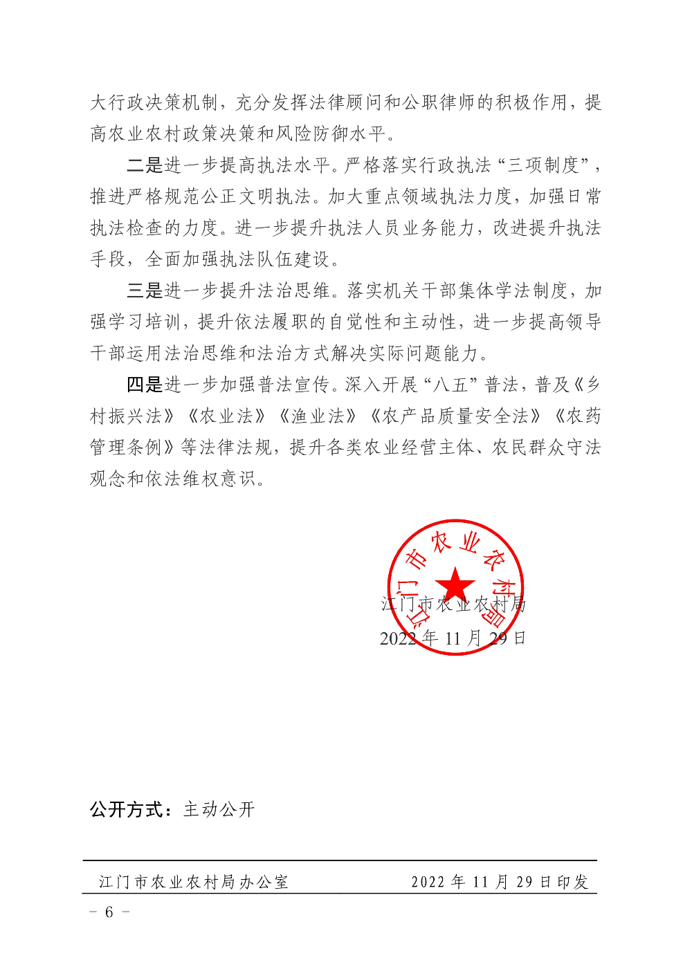 江农农〔2022〕234号 江门市农业农村局2022年度法治政府建设情况报告