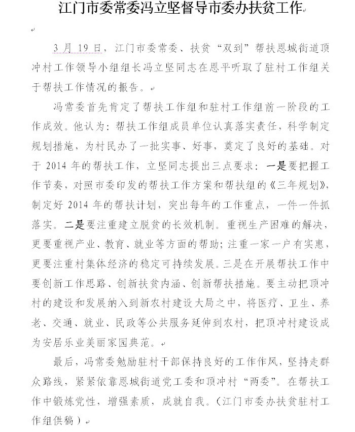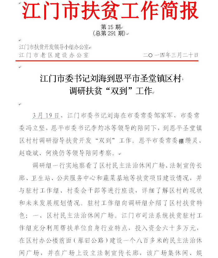 2014年江门市扶贫工作简报第15期(总第291期)