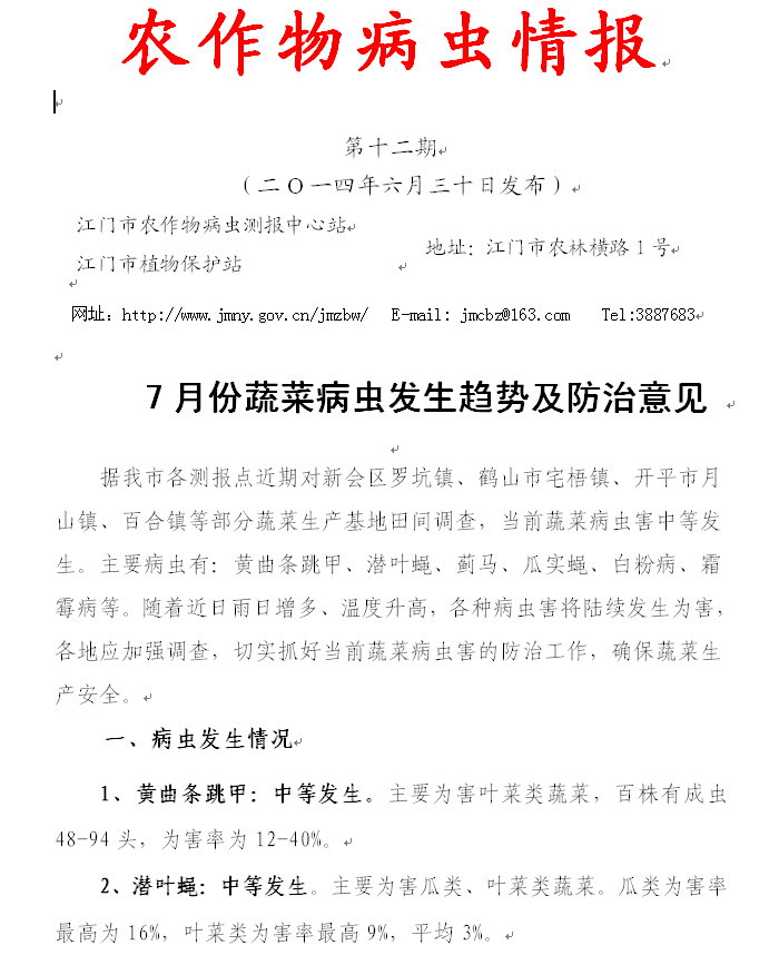 (7月份蔬菜病虫发生趋势及防治意见 )