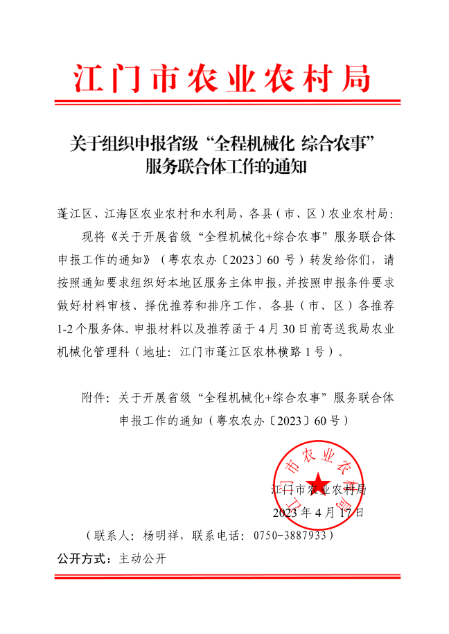 附件 关于开展省级省级“全程机械化 综合农事”服务联合体申报工作的通知.pdf