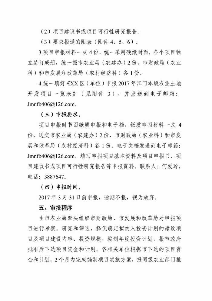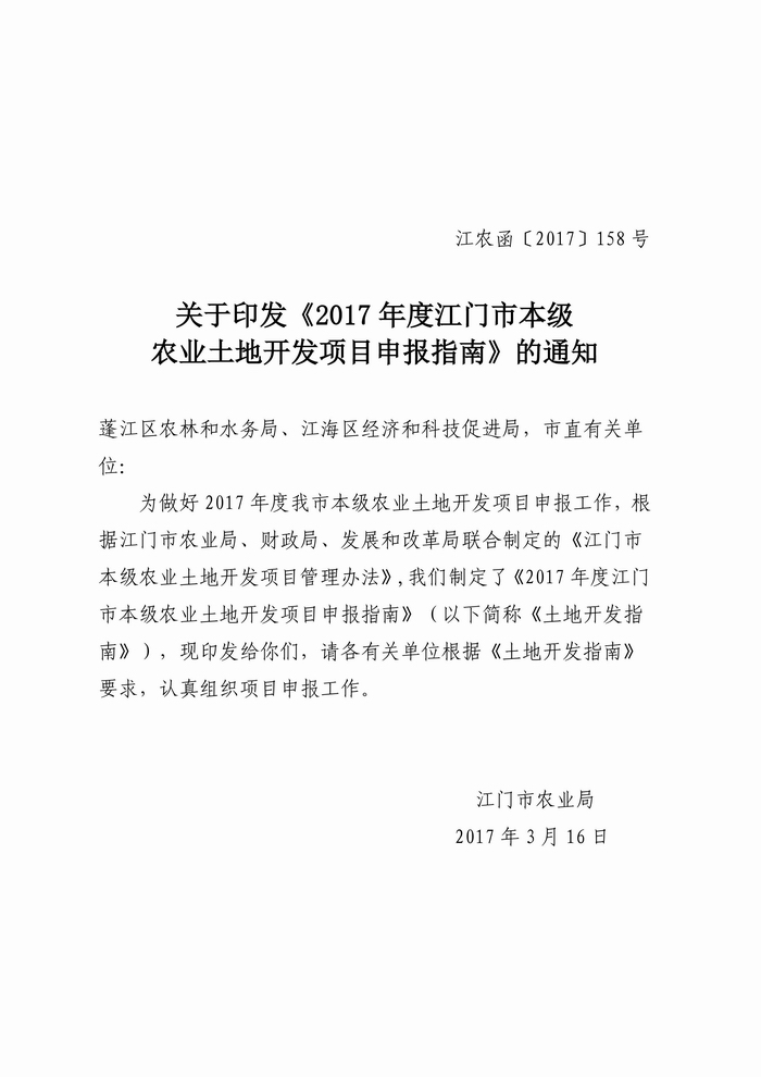 关于印发《2017年度江门市本级农业土地开发项目申报指南》的通知