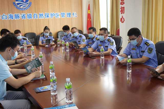 在联合执法工作会议上,市海洋综合执法支队支队长汪炳康同志表示,两部门要积极探索“海综执法+白海豚保护”联合执法协作机制,实现“四个整合”:一是职能有机整合。海洋综合执法部门贯彻执行《中华人民共和国海洋环境保护法》《中华人民共和国渔业法》,开展海洋生态环境和海洋渔业执法检查工作,结合保护区管理处巡航管护等职能,实现两部门在履行海洋环境保护中各司其职、密切配合。二是机制有效整合。成立联合执法组,建立会商机制,定期研判协调工作。统分结合,综合运用日常巡逻和专项打击方式,发挥管理处日常巡航管护、属地海综部门日常执法巡逻、江门海综部门日常监管等作用,完善市县镇三级协调监督体系。三是资源有序整合。整合海综执法船艇力量,管理处依托“E航海综合服务平台”在保护区设置实验区、缓冲区、核心区,海综部门依托“广东省海洋综合执法指挥系统”设置电子围栏,采取“海上巡、系统看”监管方式,实行实时动态监管,对违法行为第一时作出反应。四是宣传有力整合。坚持谁执法谁普法,编印《六个必须 八个严禁》等小册子,对渔业生产以及白海豚保护的法律依据、禁止行为以及举报投诉电话广泛宣传,营造社会氛围。