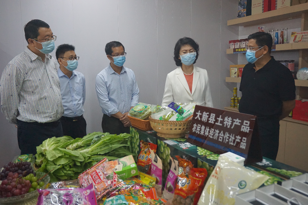 吴晓晖一行参观明仕村大新县农产品展示厅