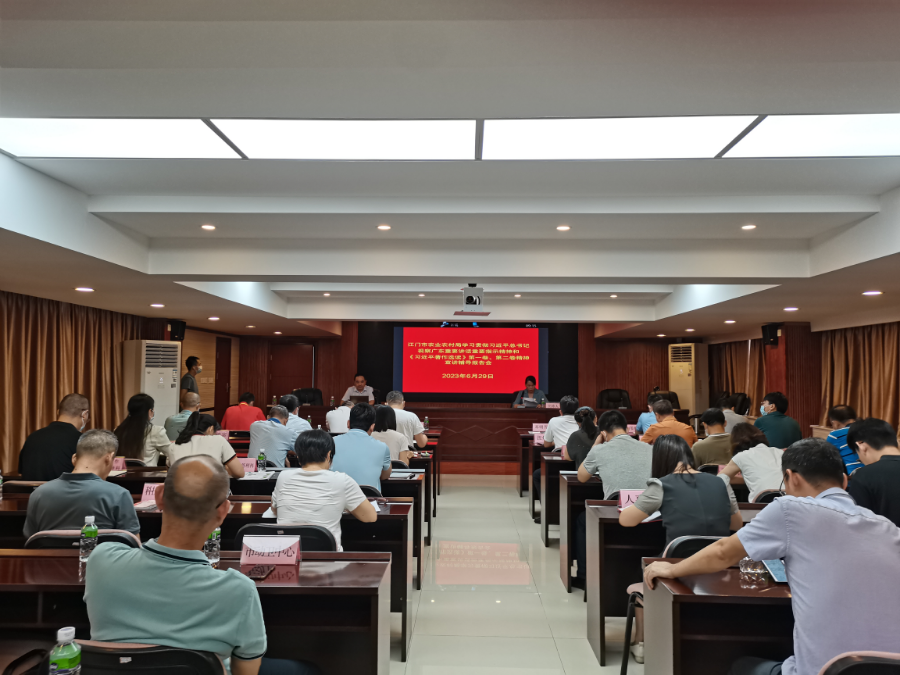 6月29日上午,市农业农村局召开学习贯彻习近平总书记视察广东重要讲话重要指示精神和《习近平著作选读》第一卷、第二卷精神宣讲辅导报告会,邀请了江门职业技术学院党委书记张忠林同志授课。报告会由市农业农村局党组成员,市海洋综合执法支队党组书记、政委邓明芳同志主持。