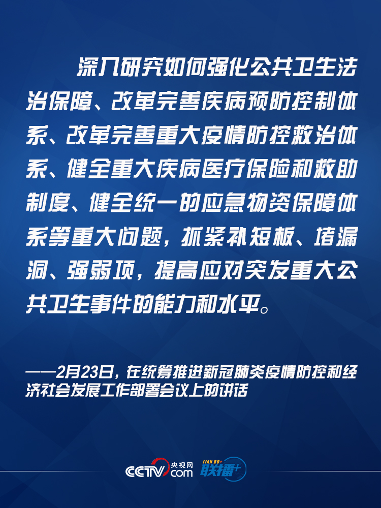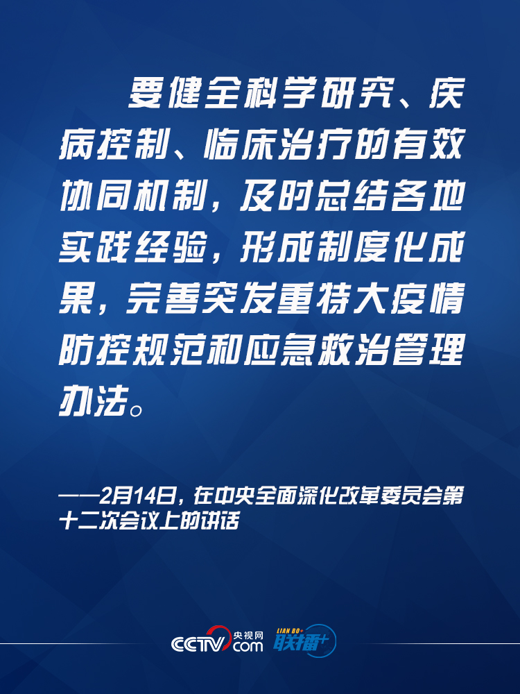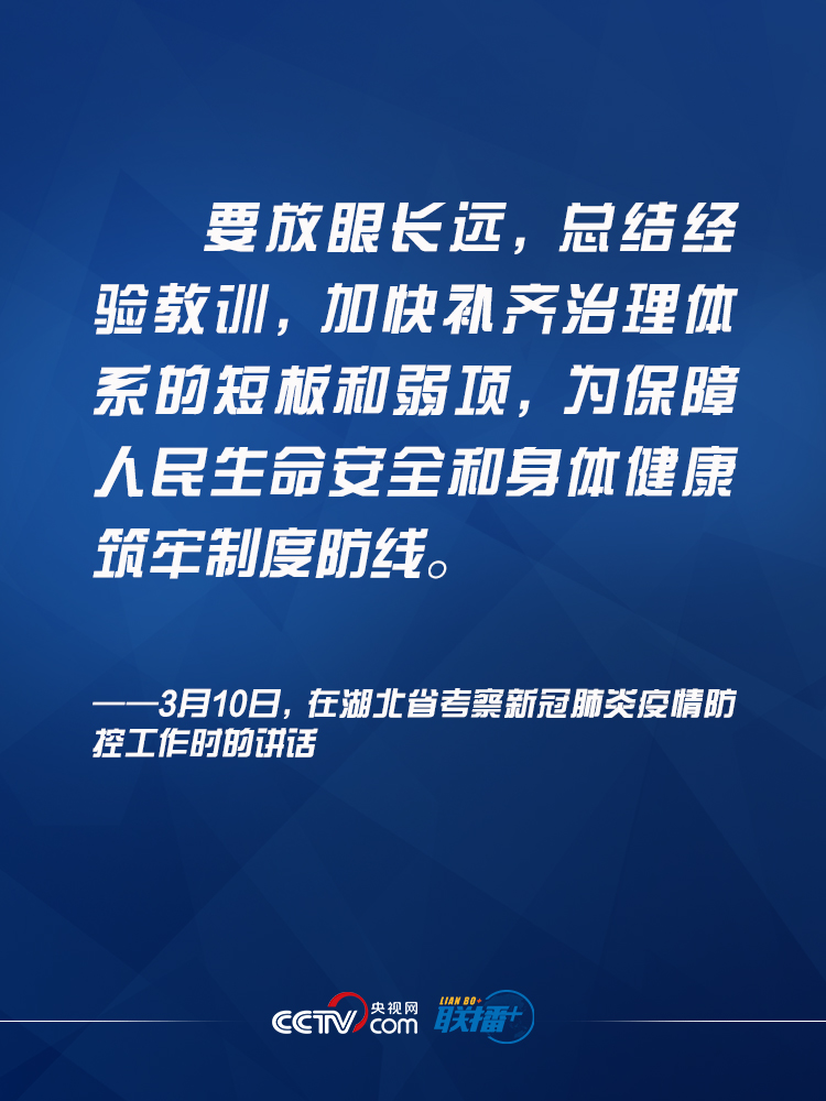 小智治事,大智治制。这次新冠肺炎疫情防控,对我国治理体系和治理能力是一次大考。战“疫”以来,习近平既立足当前,又谋划长远,部署疫情防控同时,多次在发表重要讲话和考察调研时对健全各方面制度,完善治理体系进行部署。央视网《联播+》栏目特进行梳理,与您一起学习。