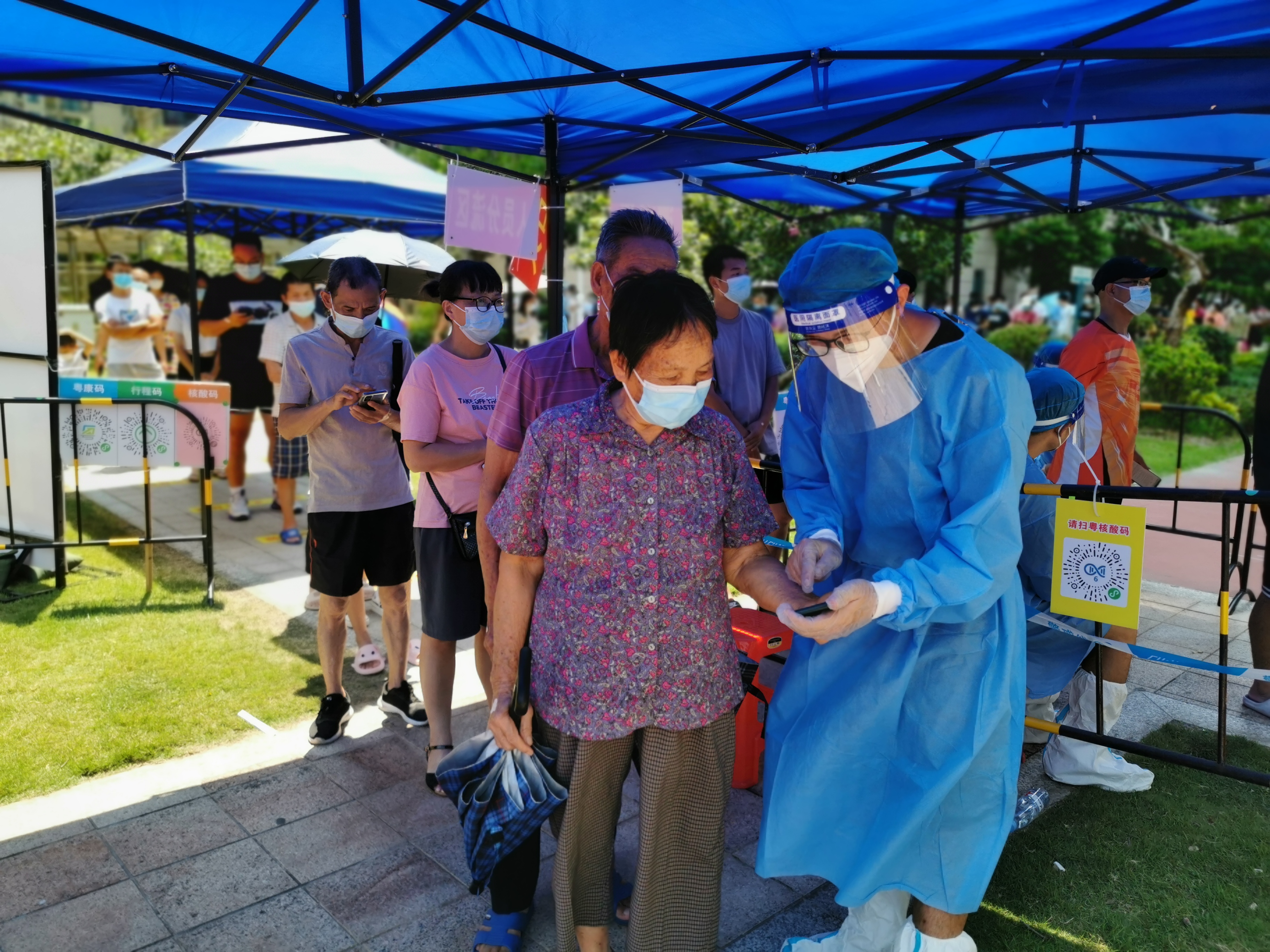 群众的满意就是对我最大的肯定:家住会城明翠社区的肖雅欣同志所在的核酸检测点有较多65岁以上的市民群众,由于不少长者家人需要工作,他们大部分都是自行前往参加核酸检测,很多长者没有智能手机,也弄不明白粤康码、核酸码的区别。肖雅欣同志负责的工作就是帮助这些市民长者录入信息、打印核酸码。肖雅欣同志表示,虽然等待的时间都很长,但是长者们仍然非常耐心地向其提供所需的相关资料,也都不忘跟她说一声谢谢。闷热的天气虽然让肖雅欣同志的衣服和隔离衣都湿透了,但群众的每一声“谢谢”,都让她感到无比满足,她坚信,有这么配合、理解、支持防疫工作的市民,江门一定能够快速战胜疫情!