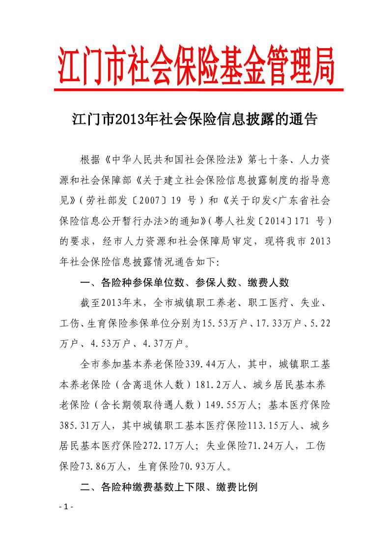 江门市2013年社会保险信息披露的通告