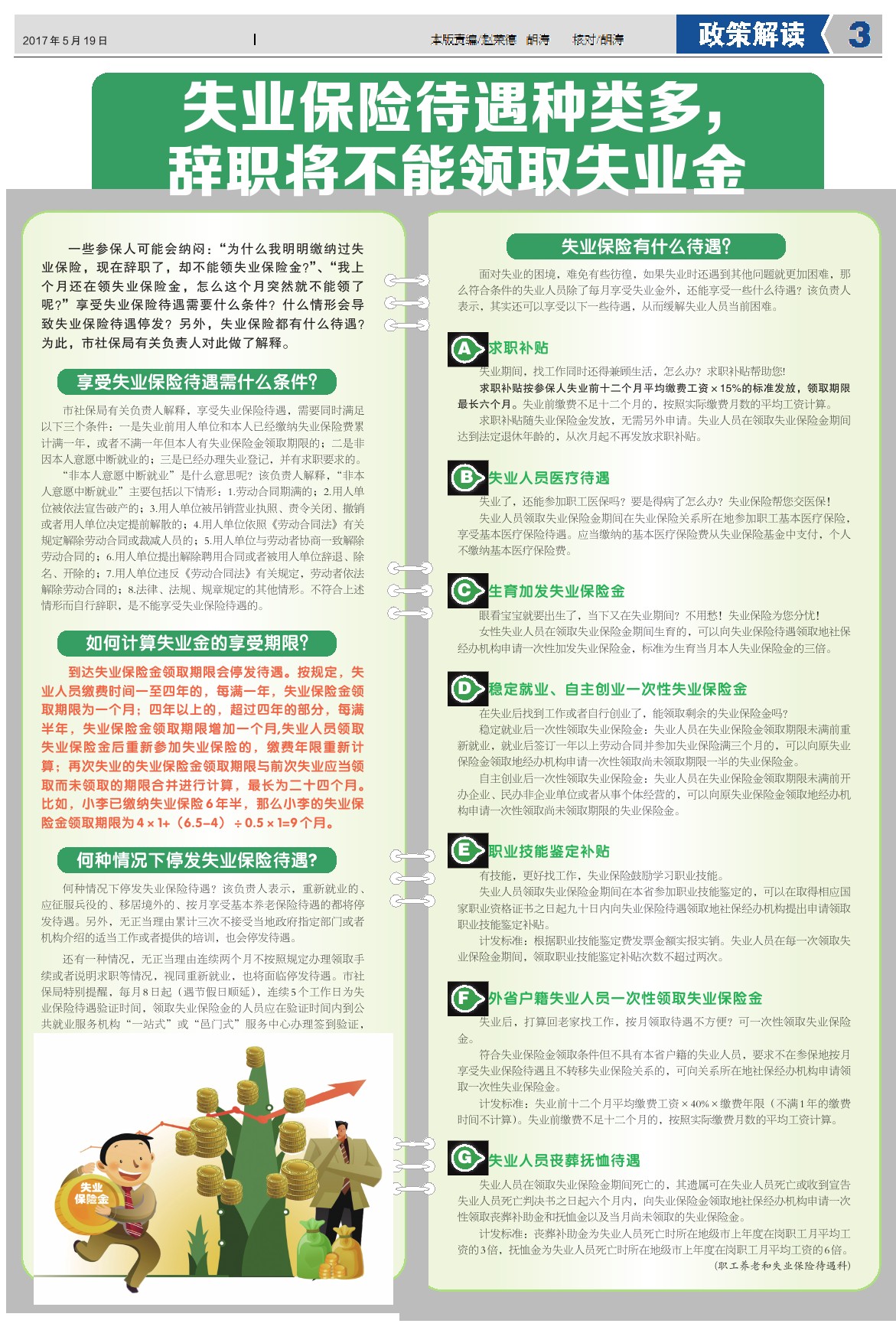 【图文】失业保险待遇种类多 辞职将不能领失业保险金