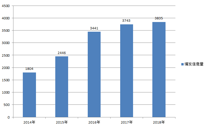 图1:江门市生态环境局2014-2018年编发信息量对比图