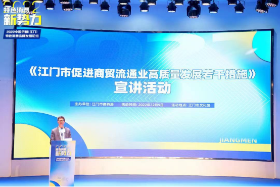 李汉高表示:近年来,我市把培育“江门茶饮”“侨都咖啡”“五邑美食”等特色消费品牌作为打造消费新场景、发展消费新业态的重要抓手,在政策引导、金融服务、人才培养、宣传造势等方面投入了大量资源。近日,《江门市促进商贸流通业高质量发展若干措施》(以下简称《若干措施》)正式印发,从支持商贸流通企业做大做强、推动消费载体提档升级、培育壮大新业态新模式、加强品牌建设、全面促进消费、优化消费环境等多个方面推动我市商贸流通业高质量发展。《若干措施》包括鼓励批零住餐业增收、支持“小升规”、支持制造业企业建立销售公司、支持打造社区便民消费圈、支持本地连锁经营企业发展、支持外地连锁企业落户江门、加快发展绿色消费、推动“老字号”焕发新活力等多项重点措施。