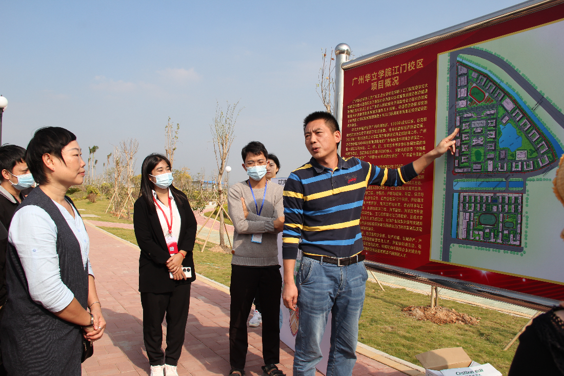 最后,结合土地收储主业,全体党员干部来到滨海新区核心区启动区政府储备土地参观学习。该片区目前已引进的广东华立学院项目为市重点建设项目,项目占地1258亩,目前一期已建成并投入使用,于今年9月顺利招生,现在校学生约有550人。大家一一参观了学院教学楼、科学楼、图书馆、食堂、学生宿舍等功能区,湛蓝的天空、清澈的流水、独特的哥特式建筑钩织了一幅风景秀丽的图画。在华立湖边,滨海新区管委会规划建设局局长陈健鹏同志为大家详细介绍了滨海新区的开垦历史、华立学院项目的规划情况以及未来前景,指出银湖湾滨海新区在江门市委、市政府的重要部署下,积极弘扬“踏平崖海千重浪,誓将荒滩变良田”的“围垦精神”,狠抓招商引资、促进项目落地、创新投融资方式,推动银湖湾滨海新区加快走向繁荣,激荡起创新浪潮的澎湃动能。