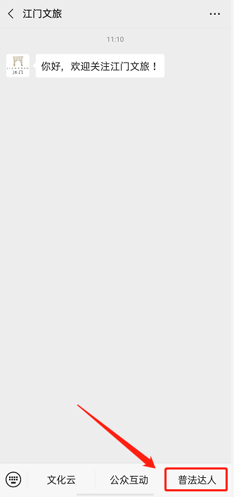 (三)登录“江门文旅”微信公众号后,点击底部菜单栏“普法达人”按提示进行在线竞赛。