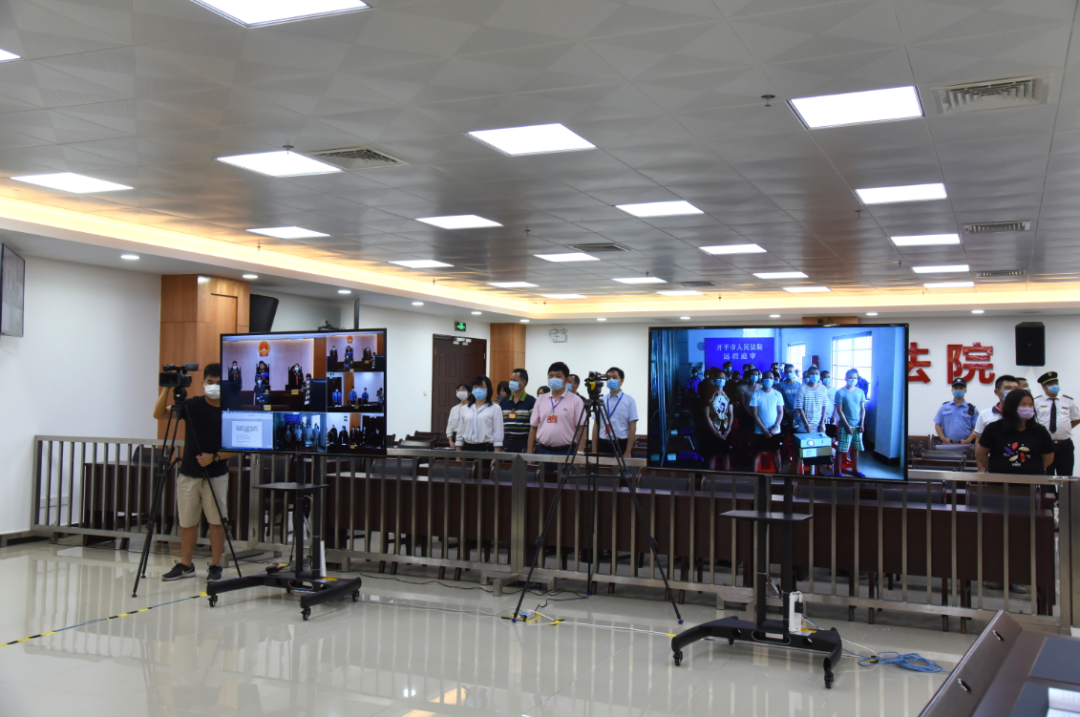 恩平市人民法院依托远程审判系统,连线恩平看守所、开平看守所等地,依法对何家谋等57人涉黑案件作出一审判决。