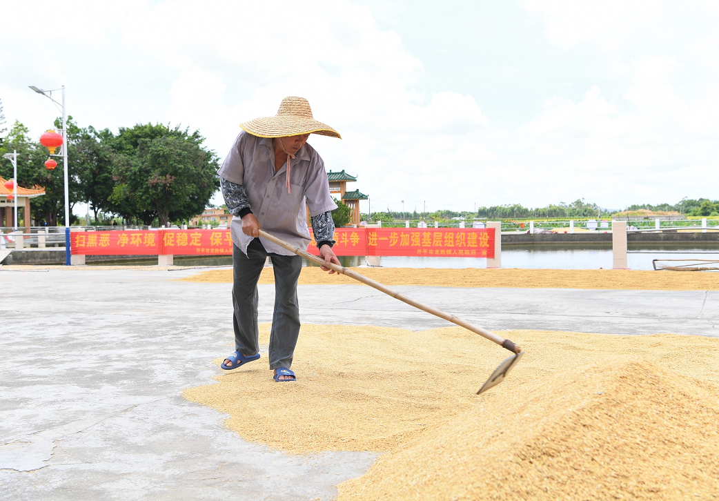 道路硬底化后,开平市龙胜镇桥新村村民在空地上晒谷。南方日报记者 杨兴乐 摄