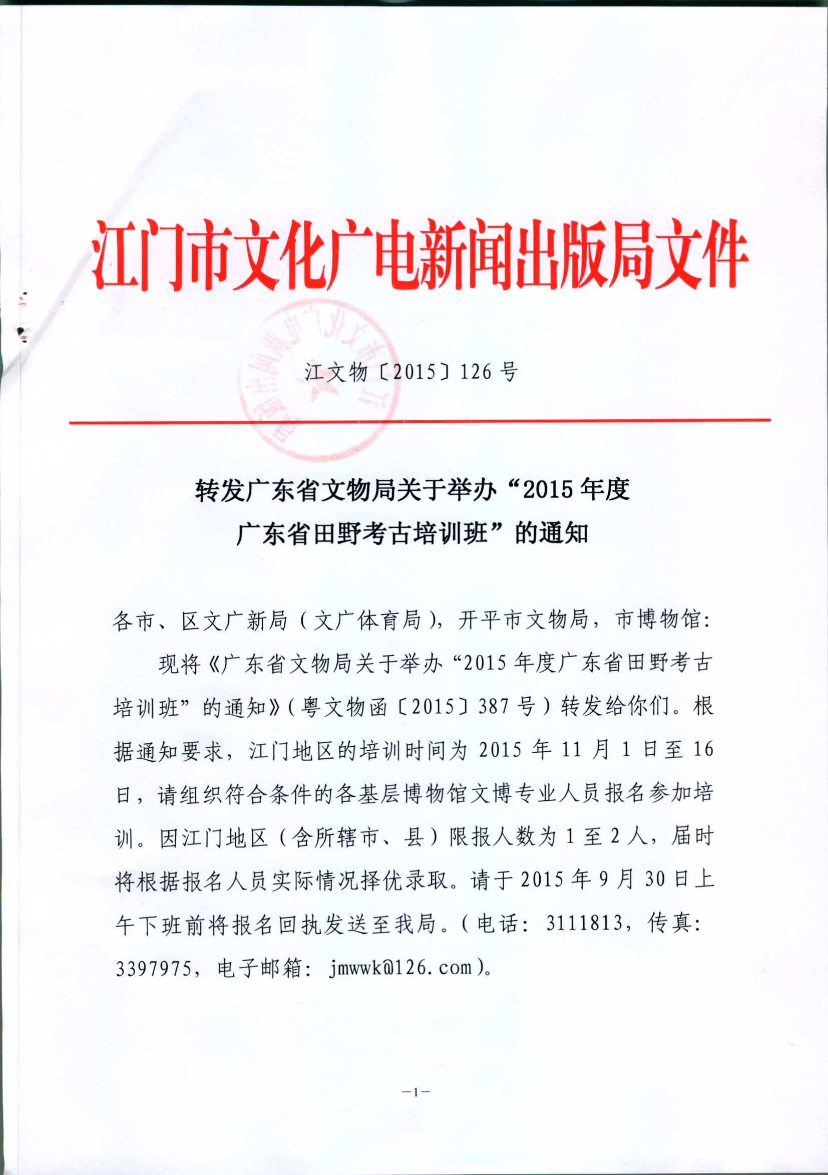 转发广东省文物局关于举办“2015年度广东省田野考古培训班”的通知(江文物〔2015〕126号)