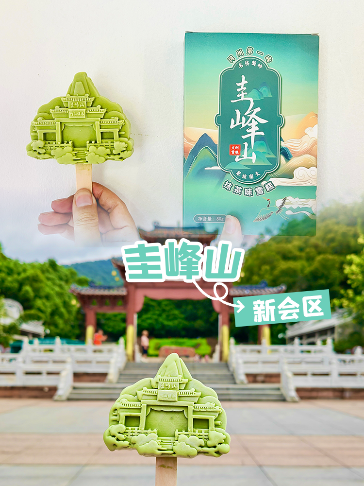 该款雪糕以凤山雄伟壮观的凌云塔为设计主体,采用了双色设计。周围的山、水、树木源于凤山自然风光,背景使用茶坑村“小黄楼”(旧乡府)的黄色,塔身为白色,既贴近凌云塔实际的颜色,也象征着古代文人墨客的高洁。雪糕味道以杨枝甘露为主,叠加白巧克力,更添浓郁香甜。