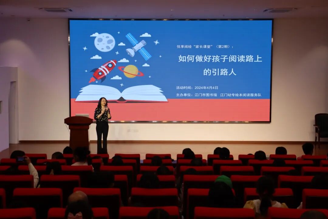 为了增强孩子自主阅读意识,激励家长给孩子构建良好的自主阅读环境,让阅读成为孩子一生的习惯,2024年4月4日下午,江门市图书馆特邀广东江门幼儿师范高等专科学校副教授,家庭教育指导师,广东省少儿阅读推广人,江门市名教师,江门市妇女儿童研究会秘书长,江门市中小学德育工作指导委员会成员,江门市亲子阅读指导师李倩敏老师,在江门市图书馆报告厅开展一场“如何做好孩子阅读路上的引路人”为主题的少儿自主阅读指导讲座。讲座吸引了100多位来自范罗冈小学、农林双朗小学、江南小学等学校1-3年级的学生和家长来现场聆听。