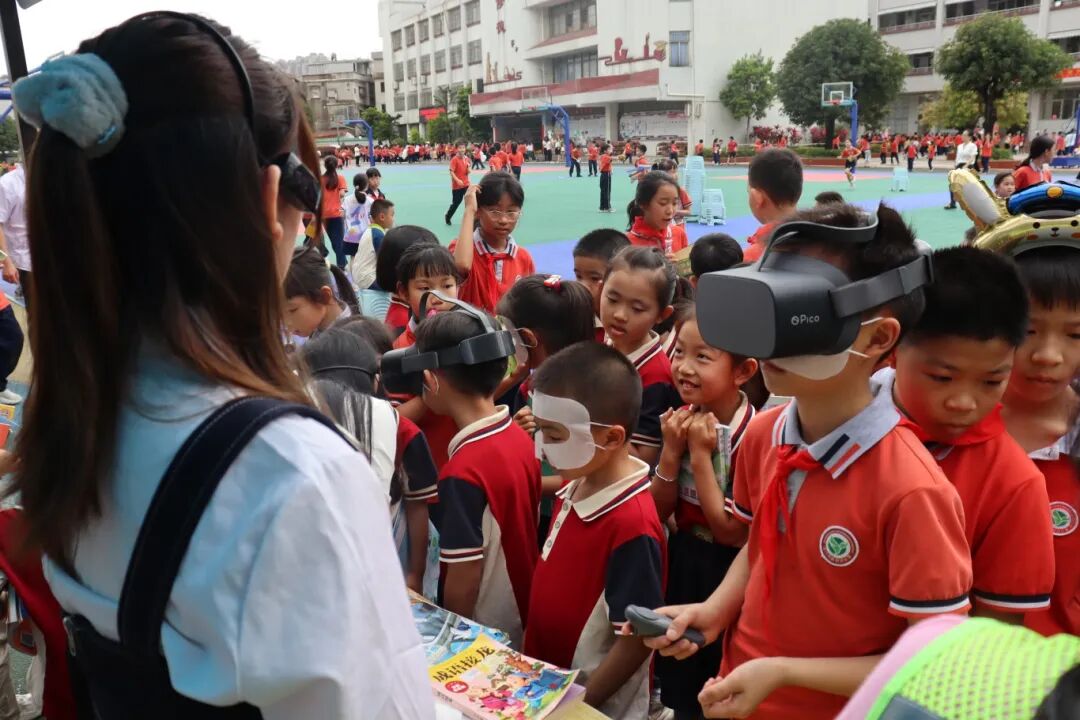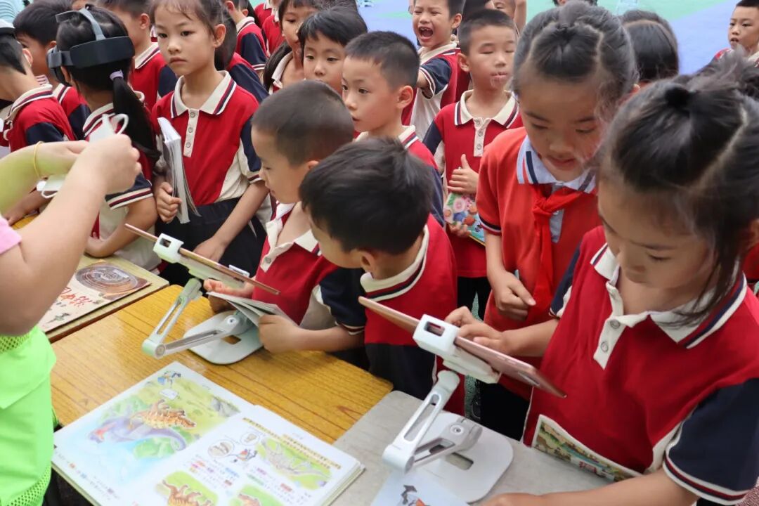 在陈白沙小学的读书节活动中,江门市图书馆除了送图书到学生手中,还开展了“图书馆管理员职业体验”活动,将数字阅读资源带到校园,让学生们开心地体验图书馆有趣的数字化阅读设备,欣赏AI数字阅读资源,感受阅读的乐趣。